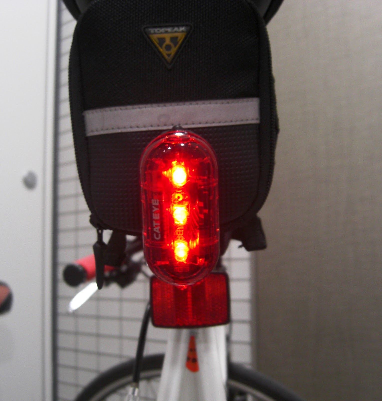 リアのCATEYE。サドルバックにクリップ留めしてある |