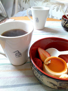 自宅から持参したプリンとイチゴ、バナナで盛り付けた。