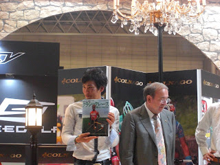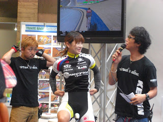 そしてブリジストンのアンカー。 ふと、隣のブースをみたら、女性サイクリストのMOCOさんを発見。デモンストレーションのペダリングは速かった(^O^)/